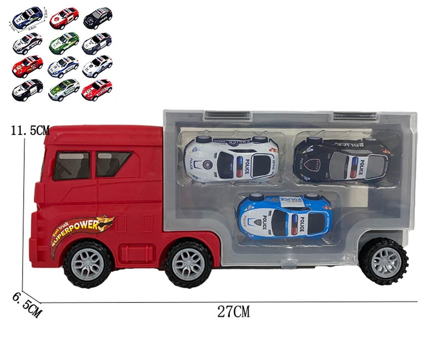 Комплект с множество елементи – включва автовоз + няколко малки коли (брой може да варира, според наличните комплекти). babyhome
