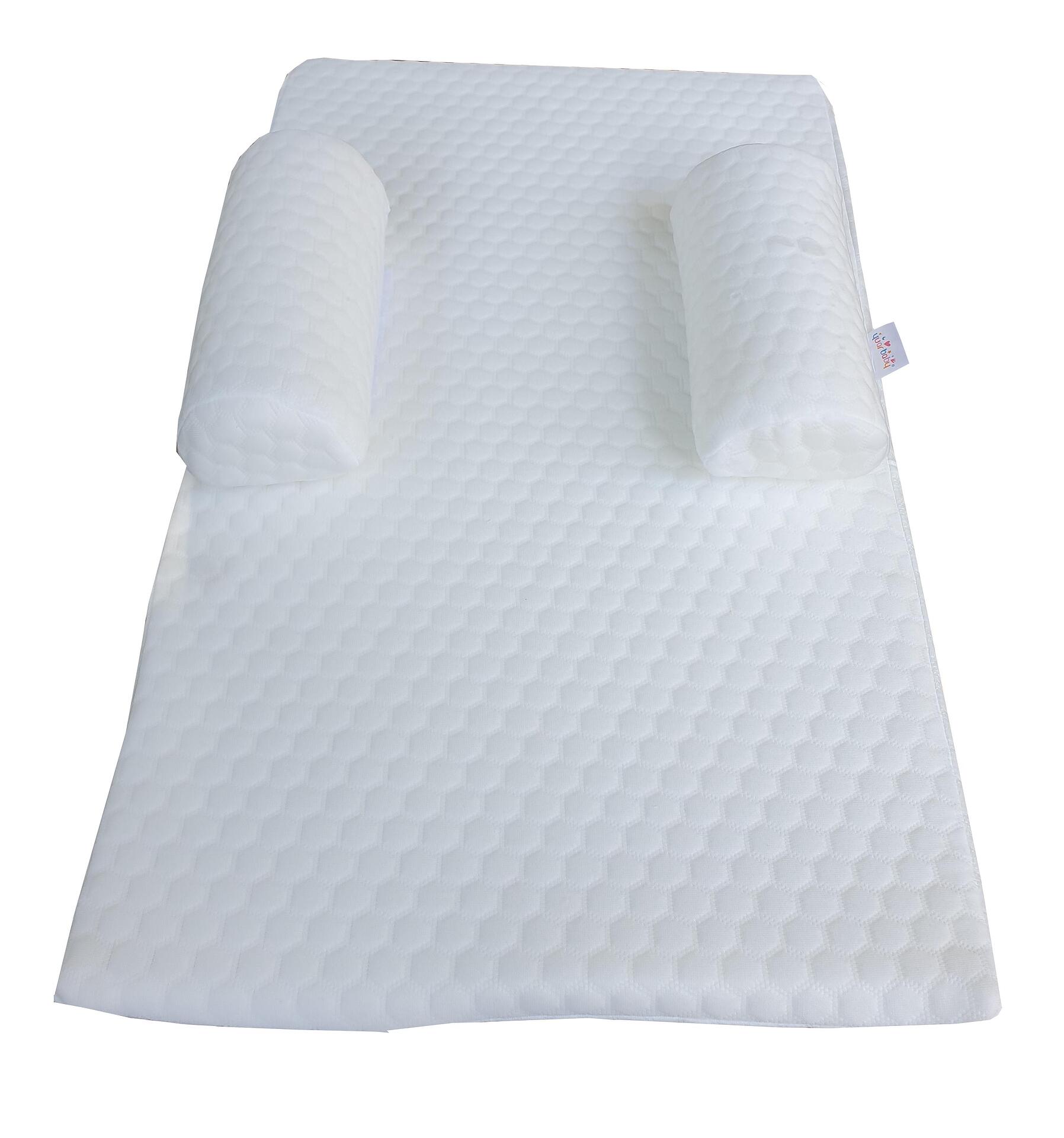 Двете меки странични възглавнички осигуряват стабилна позиция за сън на една страна, намалявайки риска от обръщане и осигурявайки спокойствие както за бебето, така и за родителите.