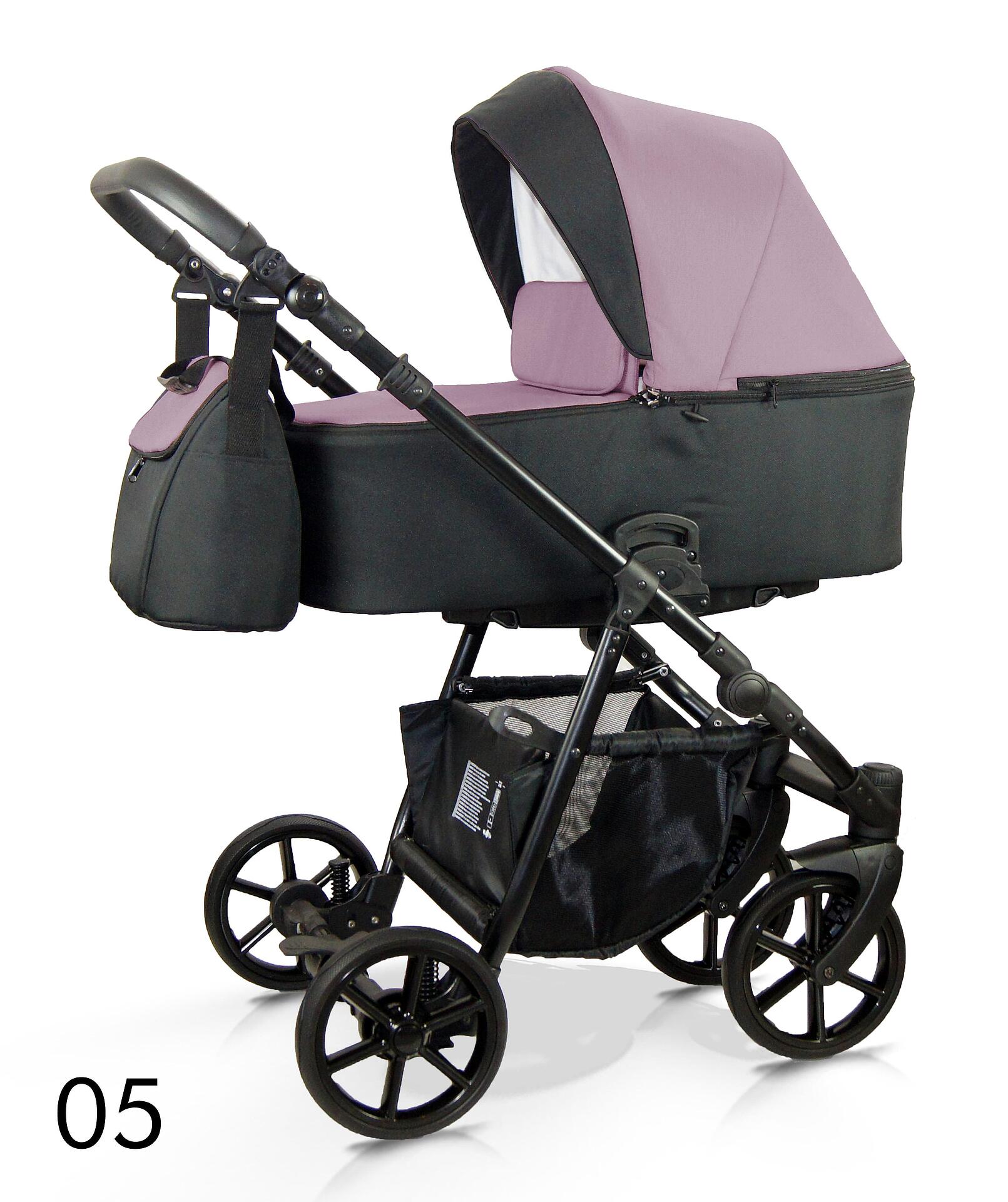 Кошница Капакът се състои от три клина. Той разполага с регулируем капак, система за настройка, дръжка за носене и прозорец за вентилация с мрежа против комари. Кошницата е изработена от здрав материал с капак, който защитава краката на бебето, и вътре има памучен матрак.
