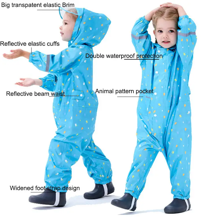 Със своите цветни и забавни дизайни, включително анимационни фигури и ярки шарки, този гащеризон носи радост и комфорт. Широките ластични маншети на ръкавите и крачолите гарантират плътно прилепване, за да се избегне влизане на вода, а долната част на крачолите е снабдена с регулируеми ленти, които предотвратяват изхлузване от ботушите.