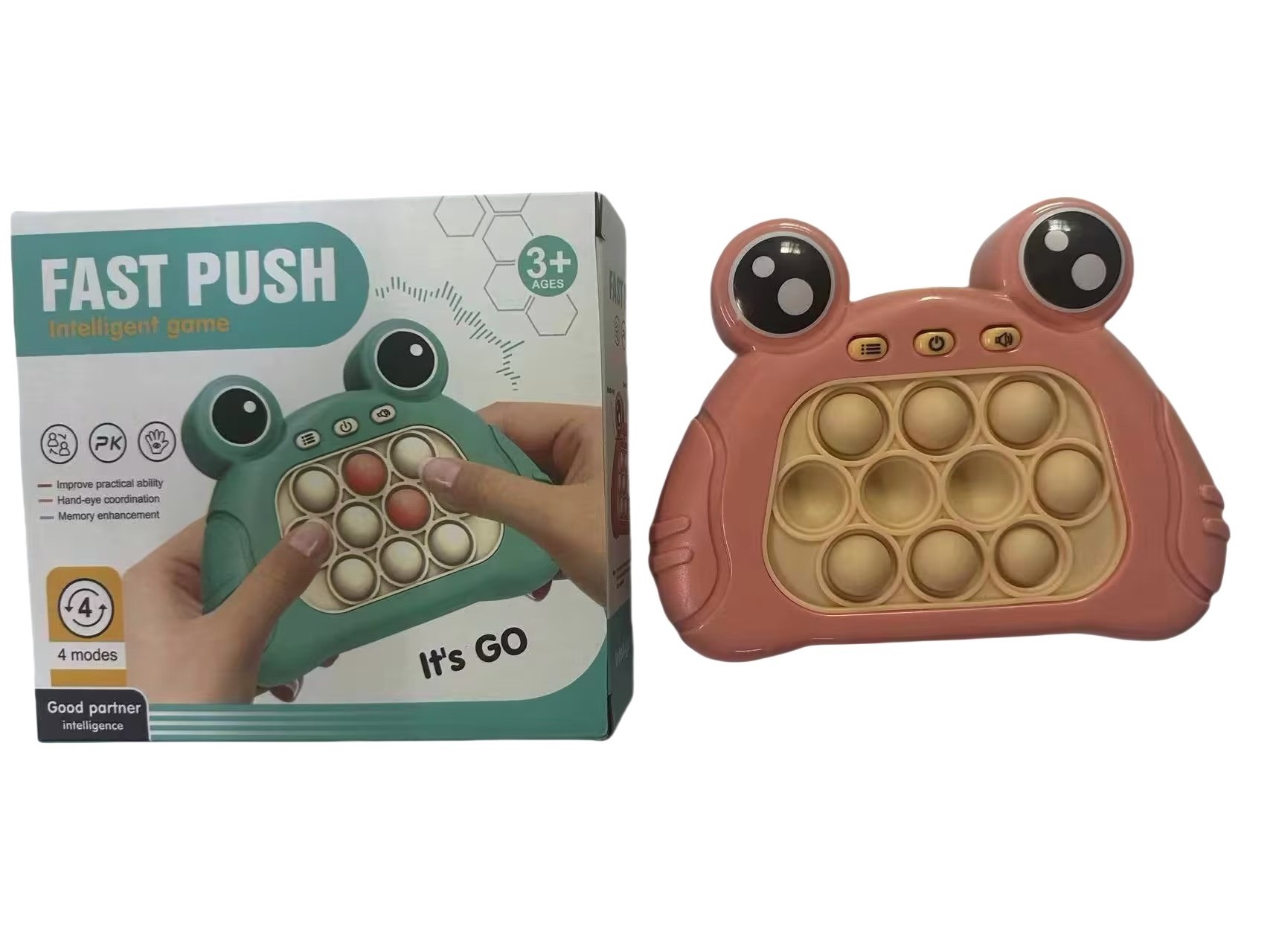 "Бързи бутони" е електронна играчка, предназначена да тества и подобрява бързината и координацията на децата. Със своите ярки светлини и разнообразни звукови ефекти, тя предлага часове забавление и предизвикателства. Играта изисква от играчите бързо да натискат светещите бутони, следвайки светлинните и звукови сигнали, което спомага за развитието на концентрацията и моториката.