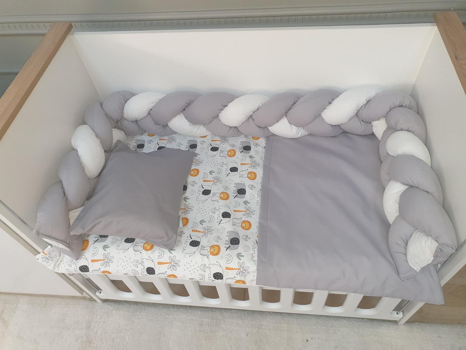 Този комплект е идеален за бебешка кошара с размери 60x120 см, като предлага пълно покритие и комфорт за съня на вашето дете.