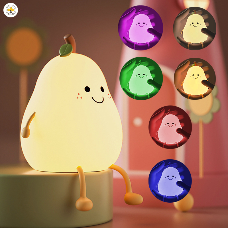 Силиконова нощна лампа „Круша“ – топла светлина с 7 цвята